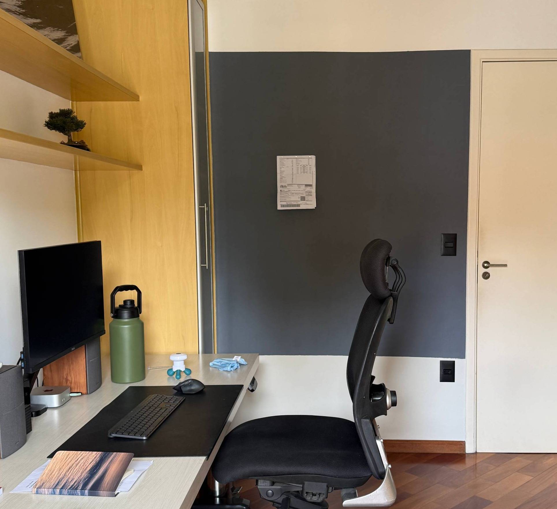 Neste final de ano eu fiquei em casa, fazendo alguns reparos e aproveitei para organizar e pintar o meu escritório, onde eu costumo gravar alguns vídeos para o canal. Após repintar tudo, incluindo o teto, acabei me empolgando e pintei uma parede magnética, para colocar fotos, papéis, boletos(rs).